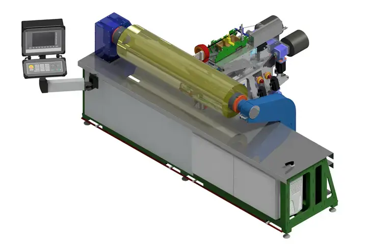 Hille ist spezialisiert in der Entwicklung von maßgeschneiderten Wickelmaschinen. Von 3 bis 5 Achs-, über Roboter-Wickelmaschine, entwickeln und konstruieren wir Ihnen die zu Ihrem Produkt passende Wickelmaschine. Fadengeschwindigkeiten von bis zu 3m/s und Produkte von bis zu 6m Durchmesser und einer Länge von 12m haben wir bereits realisiert. Zusätzlich bieten wir die Optionen des Bandagierens, Ausdornens, sowie das Absägen und Schleifen von Rohren an.